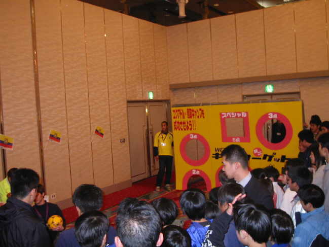 Zum Schluß gab es noch ein paar Stationen die vom Fußballverband Tottori (TFA) aufgestellt wurden. Yamanesan und ein Haufen Spieler die ich alle kenne waren dafür zuständig. Die Kids durften auf eine Torwand schiessen und einen Jonglierwettbewerb durchführen. |