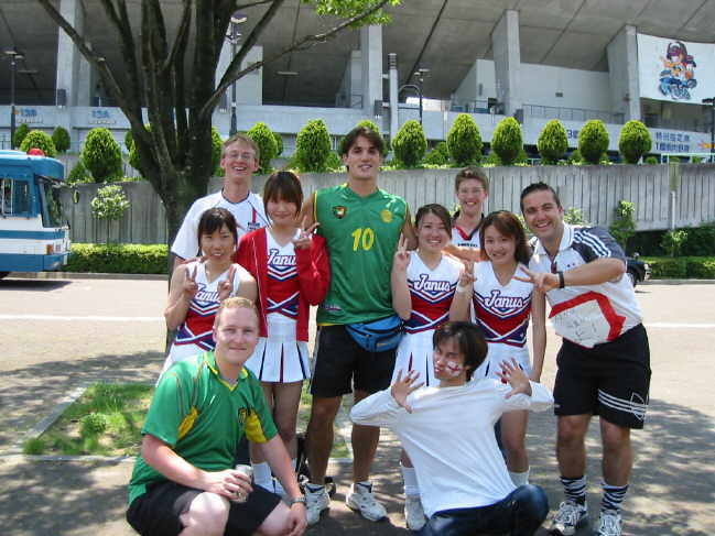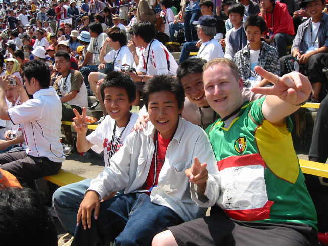 Vor dem Spiel gab es noch eine kleine Überraschung. Wir trafen Phil Rundell wieder, der JET, welcher das ganze Turnier in Nagano organisiert hatte. Auch er hatte noch auf den letzten Drücker Karten bekommen. War echt lustig ihn bei so vielen Leuten im Stadion zu treffen. Da ist es doch einfacher wenn man Ausländer ist und hier sofort auffällt, auch durch die etwas gehobenere Lautstärke! |