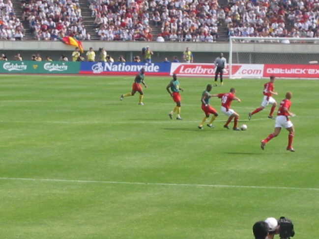 Das Spiel wurde von Umbro gesponsert. Auf unserer Seite gab es auch einige englische Fans, die lautstark Stimmung machten! Auf der Gegenseite sah man auch einige Fans von Kamerun. |