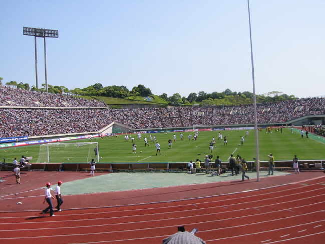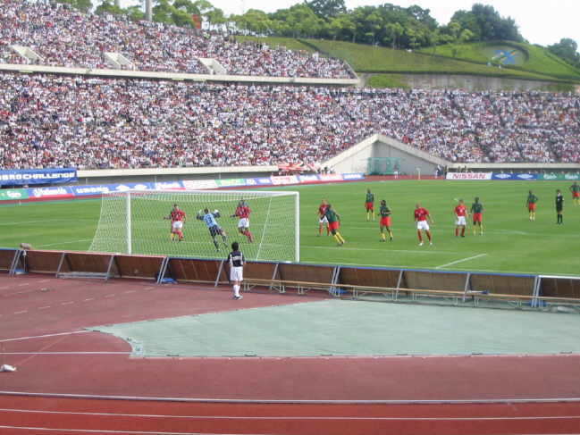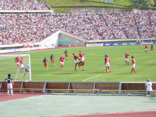 Am Sonntag, den 26.Mai 2002 machten sich Joel, Tom, Bert und ich uns auf den Weg nach Kobe, um das Vorbereitungsspiel zwischen England und Kamerun zu sehen. Ich hatte die Karten zusammen mit Tokiko vor zwei Monaten per Telefon bestellt. Das Spiel war damals innerhalb drei Stunden ausverkauft gewesen!! Wir hatten herrliches Wetter, ein volles Haus und ein gutes Spiel, was will man mehr! |