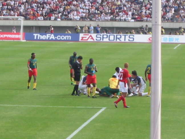 Die Kameruner machten von Anfang an Druck und ließen die Engländer nicht ins Spiel kommen. Nach 4 Minuten führten sie auch 1-0! |