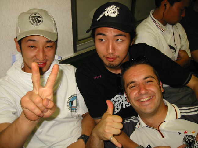 In der U-bahn trafen wir dann auch schon auf Fußballfans. Sie kannten sich sehr gut aus,was andere Teams anging. Sie kannten auch ein paar deutsche Spieler und wussten das Deisler verletzt ist. Hat Spaß gemacht sich mit ihnen zu unterhalten. Die zwei kamen extra aus Tokyo zum Spiel. |