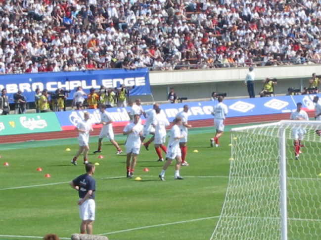 Vor dem Spiel wärmten sich alle recht gründlich auf. Doch auch hier habe ich Beckham leider nicht gesehen. Obwohl ich ihn am Tag danach im Fernsehen auf dem Platz gesehen habe. Na ja, hab auch nicht unbedingt nach ihm Ausschau gehalten. |