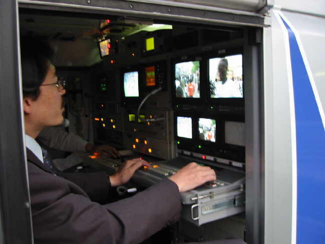 Das lokale Fernsehen war natürlich auch vor Ort und übertrug live vom Geschehen. Sie hatten einen eigenen Übertragungswagen geschickt. Auch im Stadion wuselten die Reporter herum und interviewten die halbe Stadt! |