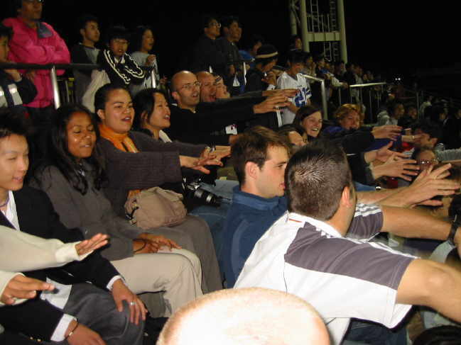 Als Ekuador in Rückstand geriet, versuchten wir alles um die Jungs aufzumuntern. Selbst die “La Ola” wurde ausgepackt, auch wenn die Japaner davon noch nie was gehört hatten. Man konnte also sein Hoffnung schon von Anfang an begraben, das die Welle eine Runde machen würde. Wenigstens begriffen es einige High School Kids, so das sie wenigstens hin und her ging, wenn es schon nicht um das ganze Stadion langte! |