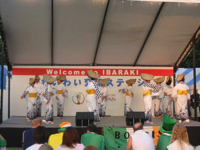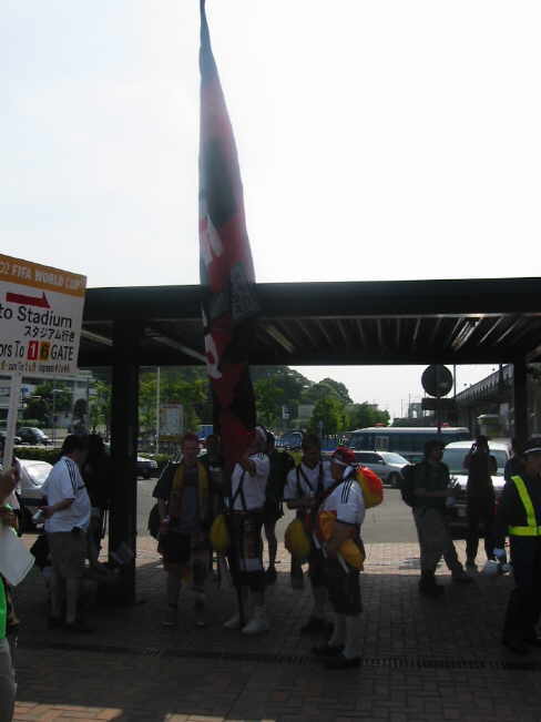 Zum Spiel in Ibaraki schaffte ich es frühzeitig anzureisen. Von Tokyo aus ging es nach der Konferenz mit dem Highway Bus nach Kashima. Die Fahrt dauerte knapp 2 Stunden kostete 1780 Yen und im Bus saßen auch ein paar Koreaner und Iren die sich das Spiel ansehen wollten. Ich kam gegen 14 Uhr am Bahnhof in der Nähe des Stadions an und war überrascht, wie viele Iren bereits da waren. Uns Deutsche konnte man an einer Hand abzählen!!! Dennoch hatte ich vor dem Spiel eine gute Party mit den Iren, die alle superfreundlich waren. Auch einige Japaner waren vor Ort und wollten ständig Fotos schiessen, wogegen ich natürlich nix einzuwenden hatte. |