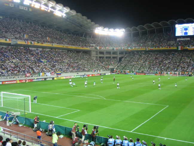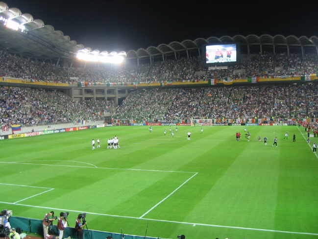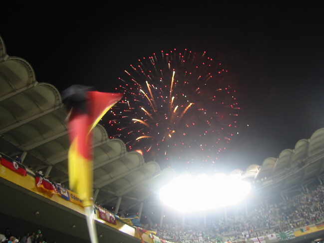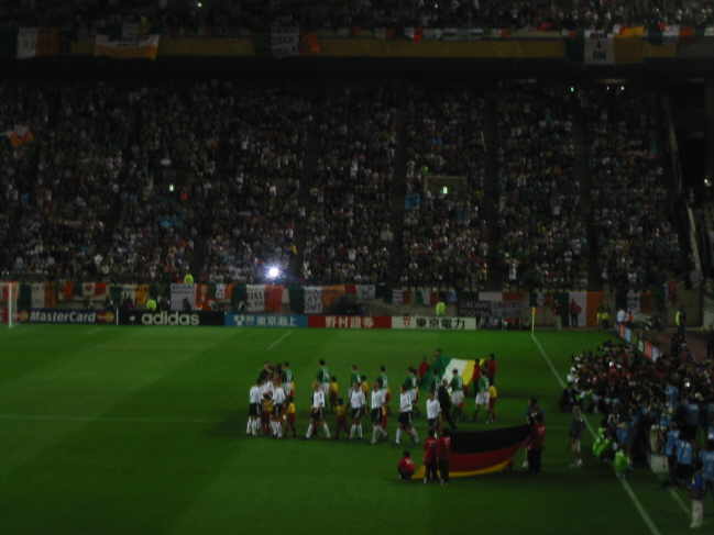 Kurz vor halb neun ging es dann auch los und die Mannschaften marschierten ein. Das ist dann immer der Zeitpunkt, bei dem ich eine Gänsehaut bekomme und total angespannt bin, weil es bald los geht. Ist jedesmal wieder einfach ein geiles Gefühl, wenn man sich denkt: “Mensch, jetzt bist du hier in Japan, bei der Fußball-WM und kannst die deutsche Mannschaft anfeuern!!!” |