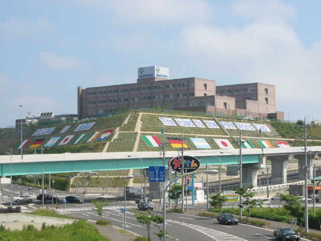 Schon von weitem konnte man das Krankenhaus von Kashima sehen. Am Fuße des Berges konnte man alle Flaggen der in Kashima spielenden Nationalmannschaften erkennen. Fand ich eine schöne Geste. |