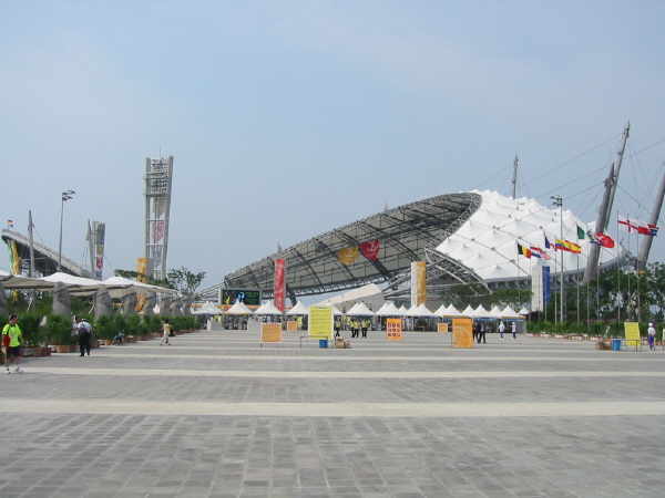 Zwischendrin kam ein Ball zu uns auf die Tribüne geflogen und wir wollten ihn nicht gleich zurück geben. Ein koreanischer Security Typ musste dann gleich den Supermann spielen und kam zu unserer Erheiterung auf die Tribüne um den großen Macker heraushängen zu lassen. Da mussten wir das Spiel natürlich noch etwas ausdehnen und warfen den Ball noch etwas mehr in der Gegend herum, bis er Verstärkung anforderte!! Lächerlich! Nach 3 Minuten war der Spaß vorbei und alle waren am lachen über ihn! |