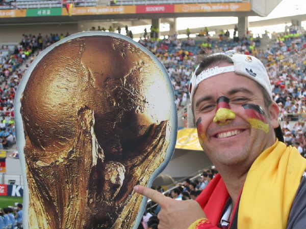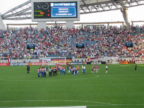 Noch 10 Minuten bis Anpfiff. Deutschland gegen Paraguay auf der Insel Jeju. |
