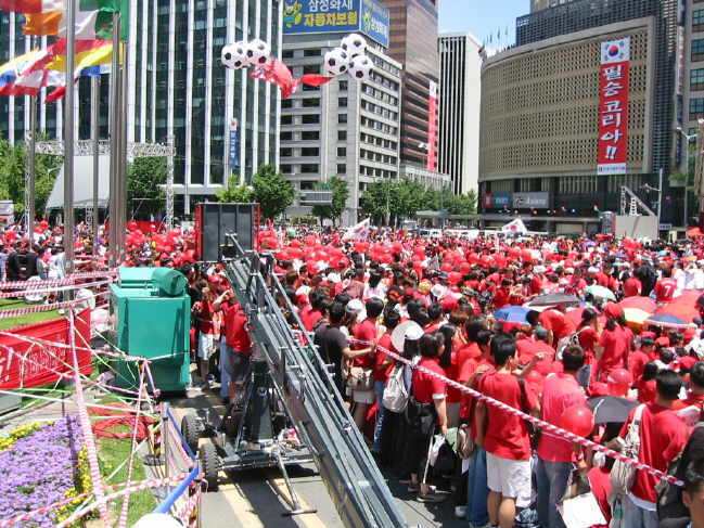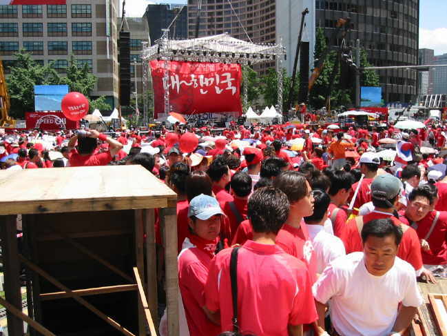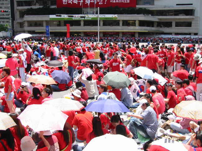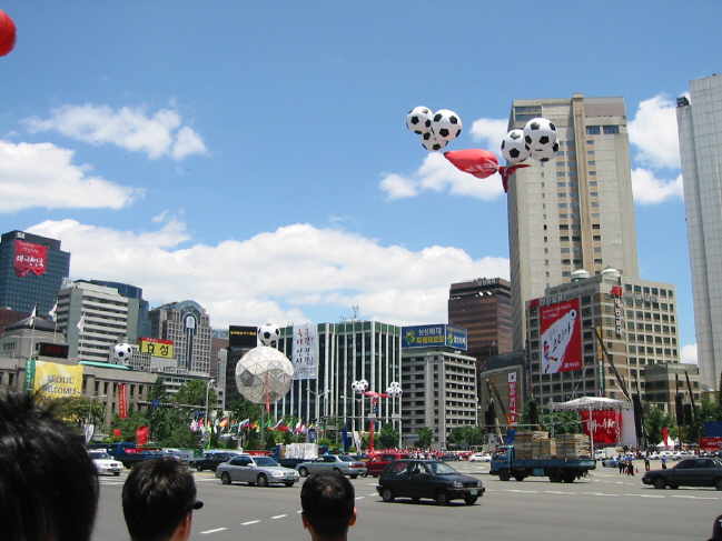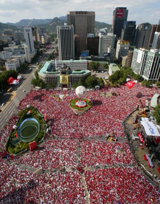 Bevor ich raus zum Stadion fuhr, wollte ich unbedingt noch den City Hall Plaza in Downtown Seoul besichtigen, da dort bei jedem Spiel die größte Party in Korea abging. So machte ich mich gegen 12 Uhr mittags auf zum Platz um ein paar Fotos zu schiessen. |