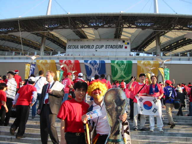 2002 mit der Fähre wieder nach Japan zurückfuhr. Ich blieb noch einen Tag im Gästehaus von Pusan und machte mich am Montag morgen auf zum Flughafen von Pusan um von dort aus für schlappe 65 Euro nach Seoul zu fliegen. Am Dienstag, den 25.Juni 2002 ging es dann bereits früh am nachmittag raus zum Seoul World Cup Stadion zum ersten Halbfinale zwischen