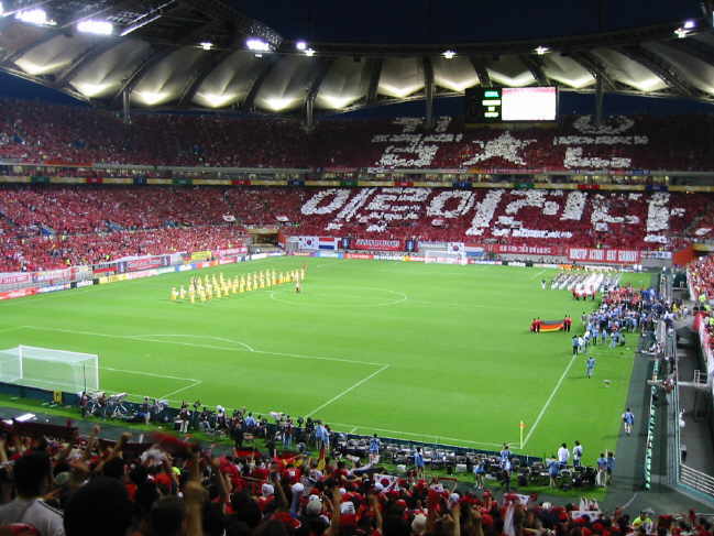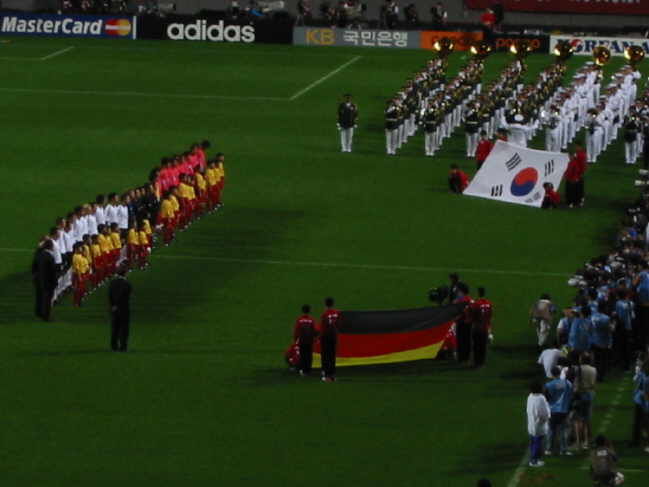 Vor dem Einmarsch der Mannschaften hatten die Fans dann Gelegenheit, der ganzen Welt ihre Message zu zeigen. Auf koreanisch war zu lesen “Träume werden wahr!” ein ganz netter Spruch der sich aber nach Ablauf der 90 Minuten zur Freude der Deutschen nicht bewahrheitete. |
