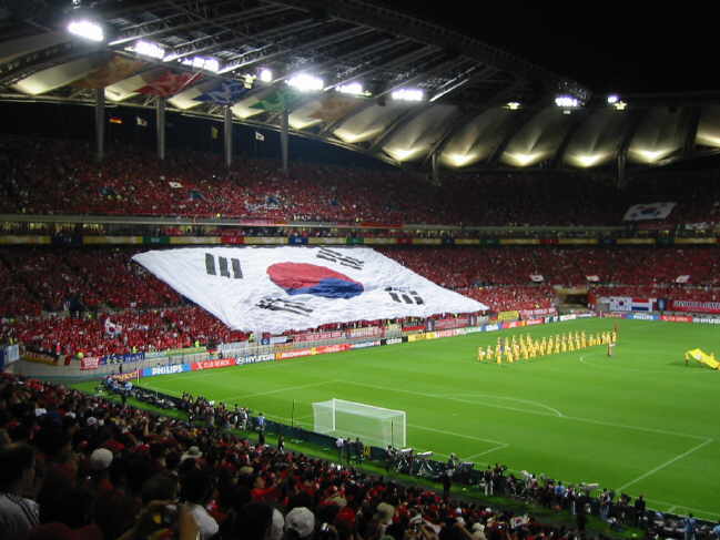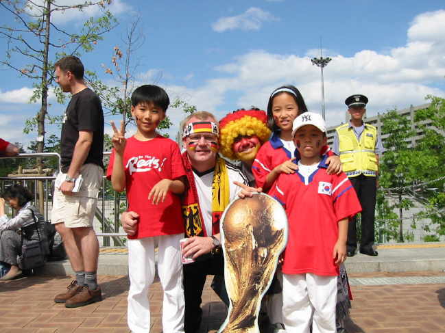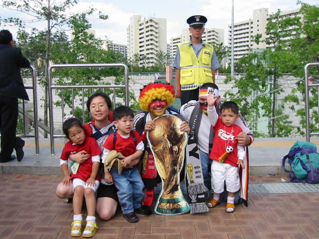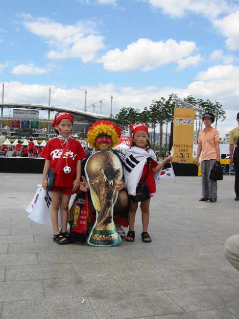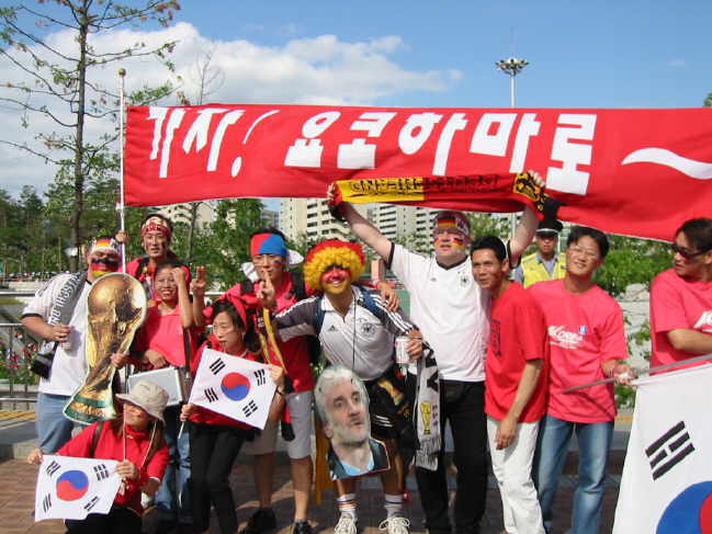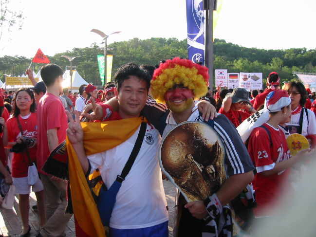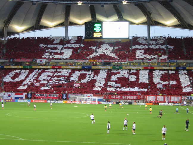 Deutschland und dem Gastgeber Südkorea. Um das Stadion gab es ein einziges Meer von Koreanern in roten T-shirts. Wir Deutschen waren gerade einmal 200 Leute würde ich sagen. Das Bild hier rechts zeigt in ungefähr, wo sich mein