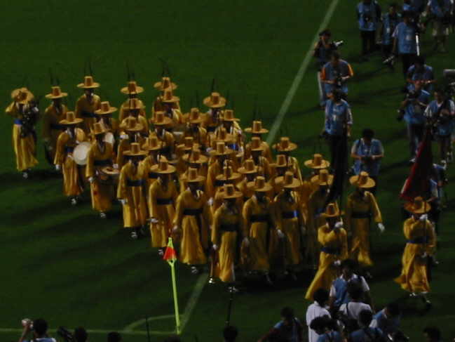 Die Nationalgarde (oder was auch immer die Jungs waren) verließen in ihren farbenprächtigen Uniformen das Feld und es ging los !! Hlabfinale Deutschland gegen Südkorea!! |