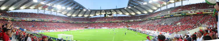 Zum Schluß wurde noch eine riesige Nationalflagge hochgezogen zu einem ohrenbetäubenden Lärm!! Die Stimmung im Stadion war echt nicht zu topen, mit Abstand die beste Stimmung, die ich jemals in einem Stadion erlabt habe!! |