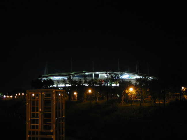 Zum Schluß ging es dann mit dem Shuttle Bus wieder zurück zur Innenstadt um noch etwas abzufeiern. Dabei warf ich einen letzten Blick auf das beleuchtete Stadion. |