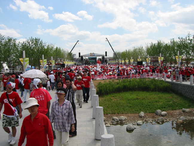 Die wartenden Koreaner waren wirklich nicht zu beneiden, denn es knallte die Mittagssonne auf den Platz und es waren bereits über 30 Grad Celsius im Schatten!!! |