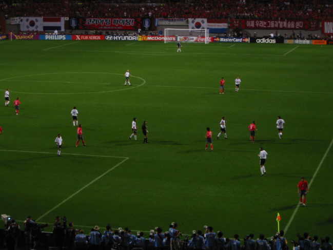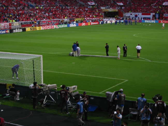 Sitzplatz während des Halbfinales befand. Dies war das erste Spiel seit Sapporo bei dem ich auf meinem vorgeschriebenen Platz saß, da die Plätze hinter dem Tor von Koreanern belagert wurden.
