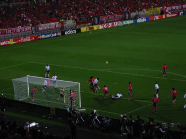 Die Deutschen standen wie immer recht schnell unter Druck gegen die flinken Koreaner. Doch die Abwehr stand doch recht fest mit Olli Kahn. Wie hier hatten wir nach Eckbällen auch ab und zu unsere Chancen. |