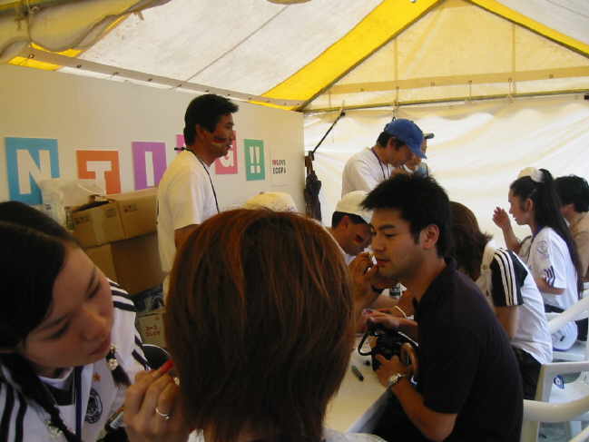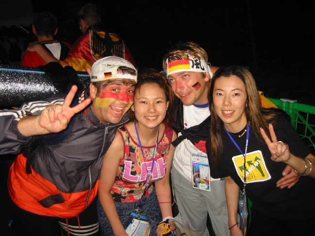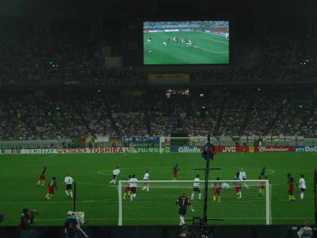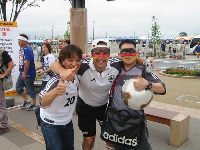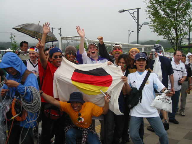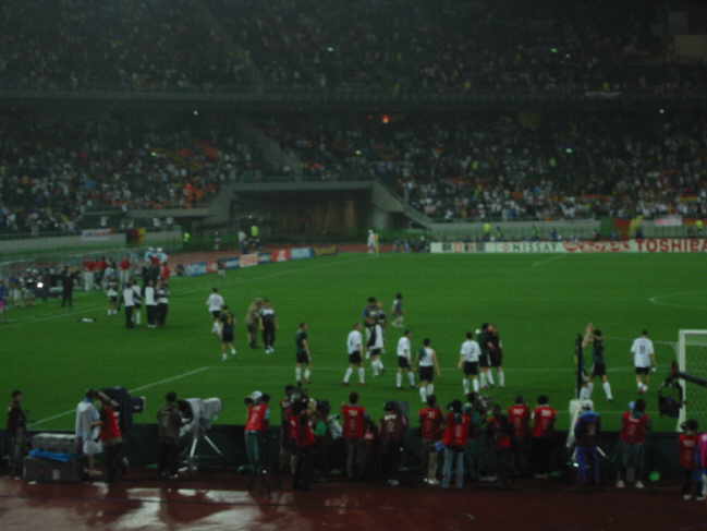 Nach Shizuoka ging es diesesmal von Tottori aus. Ich startete am frühen morgen gegen 7.15 Uhr mit dem Morgenbus nach Osaka. Dort angekommen gegen 11 Uhr morgens kaufte ich mir das WM-Spezial Ticket der Japan Rail für den Shinkansen und verließ Shin-Osaka gegen 12 Uhr. Innerhalb zwei Stunden war ich in Shizuoka und machte mich von Hamamatsu auf nach Aino zur Stadionhaltestelle. Leider war das Wetter etwas schlecht, doch trübte das meine Stimmung nicht!! Doro und Anne, zwei weitere deutsche JET´s hatten auch Karten und wir wollten uns am Stadion treffen. Dummerweise kamen sie mit dem Auto und schafften es gerade so noch zum Anpfiff. Etwas nervig, da ich gerne noch mit ihnen etwas vor dem Spiel gefeiert hätte. |