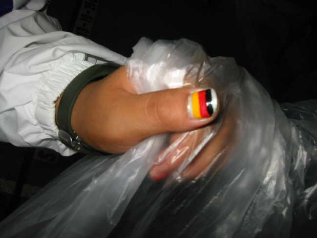 Eine der japanischen Helferinnen im Stadion hatte auch für die deutsche Mannschaft geschrien und hatte sich sogar die Fingernägel angemalt. |