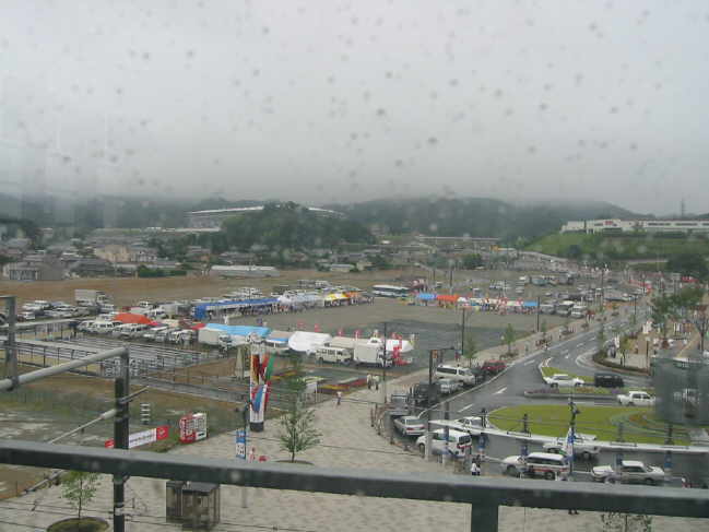Hier der Überblick von der Haltestelle Aino aus. Das Wetter war wirklich übel, aber was sollte man machen. Die Japaner hatten einiges aufgebaut, doch am beliebtesten war zweifelsohne das große Festzelt, hier auf der rechten Seite, jedoch nicht im Bild. |
