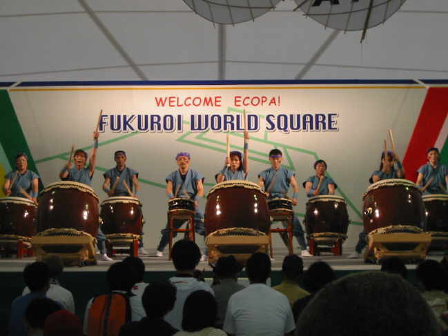 Im Innenraum des Zeltes fanden einige Aufführungen statt. Dabei gab es auch eine Vorführung von Taikotrommeln, welche wirklich klasse war und hauptsächlich von Frauen auf der Bühne vorgetragen wurden. |