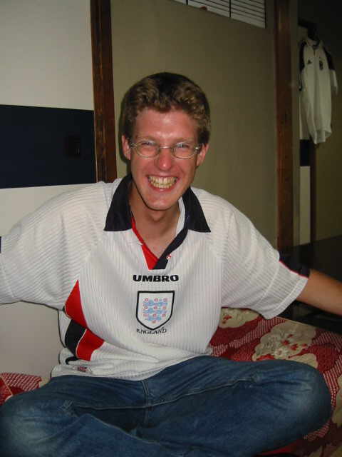 Tom ist 24 und kommt aus Luton, England. Er ist ein 2nd-Year ALT und wohnt und arbeitet in Shikano, einem kleinen Dorf ca. 15 Minuten westlich von Tottori. Er ist ein richtiges Sprachentalent, hat sehr schnell japanisch gelernt, spricht es schon sehr flüssig, und kann nebenbei auch noch deutsch und französisch, welches er an der Uni studiert hat. Auch er ist sich nicht sicher, ob er für das nächste Jahr verlängern möchte. Er ist ein großer Fußballfan und liebt seinen FC Luton, der allerdings in der 4.Liga in England spielt. Mit ihm bin ich zusammen im Japanischkochkurs, da er diesen schon letztes Jahr besucht hat, und er mich mitgenommen hat. Ab und zu hilft er mir auch mit Kohle aus, wenn es einmal eng wird bei mir. Er schüttet so einiges an Alkohol weg, wie die meisten Engländer eben, wird aber dann recht laut und etwas nervig. Dennoch gehört er auch zum Kreis meiner engeren Freunde hier in Tottori. |