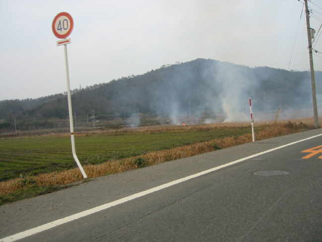 Hier eines der üblichen Bilder auf dem Land. Ganze Landstriche werden hier teilweise abgefackelt. Keine Ahnung warum, jedoch ist der