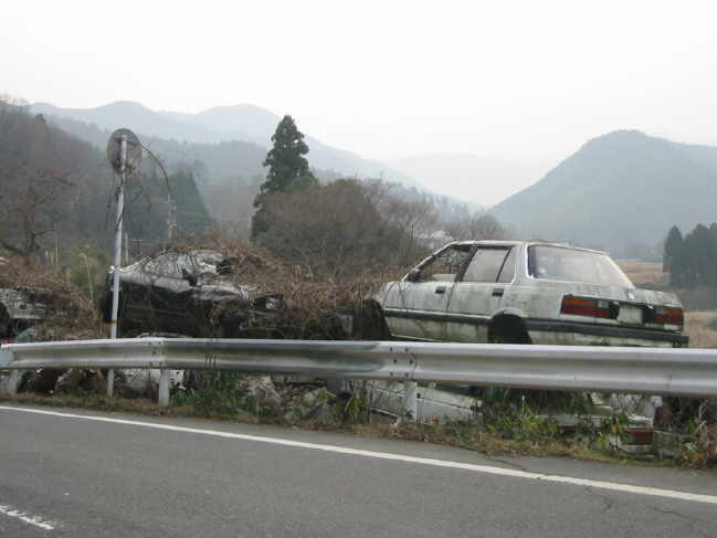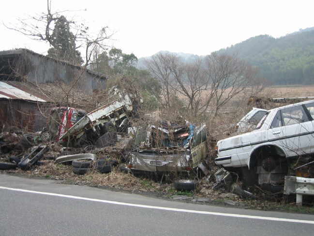 Tottori nach Kurayoshi und auch bis Yonago komme ich ab und zu. Das Bild das sich mir am Straßenrand bietet ist überall gleich. Ähnlich wie in Spanien, oder auch ab und zu in Frankreich, findet man ausrangierte